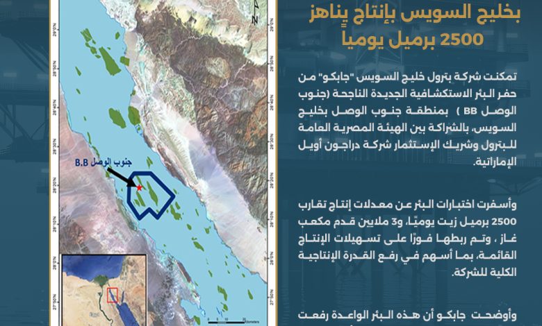بإستخدام أحدث التقنيات …جابكو تعلن نجاح حفر بئر جديدة بخليج السويس بإنتاج يومي 2500 برميل