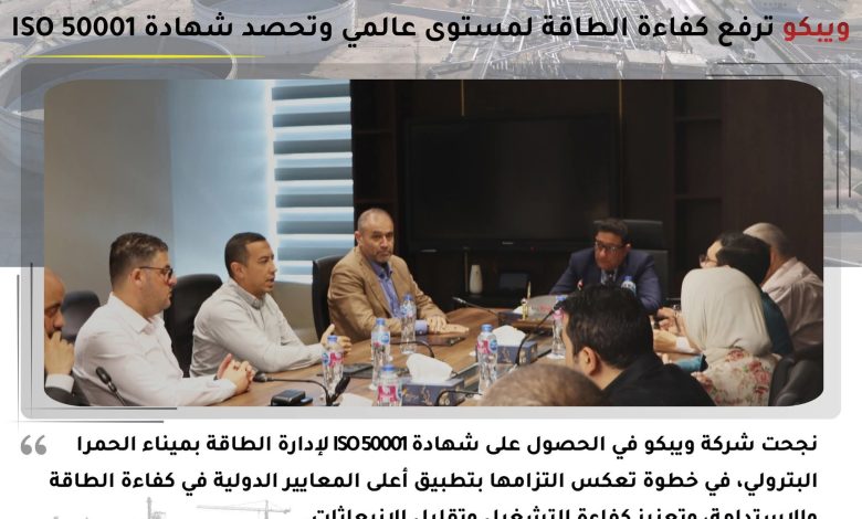 في إطار التزام قطاع البترول المصري بتطبيق أحدث المعايير الدولية في كفاءة الطاقة والاستدامة، نجحت شركة بترول الصحراء الغربية – ويبكو في الحصول على شهادة ISO 50001 لإدارة الطاقة بموقع ميناء الحمراء البترولي، وذلك على مستوى جميع مناطق التشغيل والتسهيلات ومواقع الإعاشة، في خطوة تعكس تطور الأداء المؤسسي وتعزز كفاءة التشغيل.