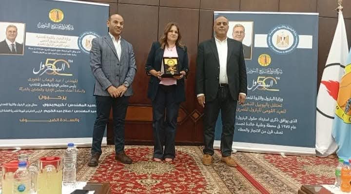خلال احتفالات عيد البترول .. تكريم إيمان عبد الحفيظ مدير عام العقود لشركتي أوسوكو والمنصورة للبترول