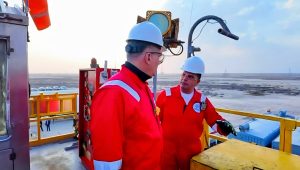وعقب ذلك، توجه الوزير إلى أحد مواقع الحفارات التابعة للشركة، وتابع سير العمليات ميدانيًا، واطمأن على الالتزام بمعايير السلامة والصحة المهنية، وحرص على لقاء العاملين بالموقع وحثهم على مواصلة العمل الآمن وبذل المزيد من الجهد لتعزيز أعمال الشركة خارج مصر.
