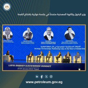 وفي سياق متصل، شارك وزير البترول والثروة المعدنية، في الجلسة الافتتاحية لقمة ليبيا للطاقة والاقتصاد تحت شعار “البنية التحتية والاستثمار لتعزيز نمو الطاقة”، وذلك بحضور دولة رئيس الوزراء الليبي عبد الحميد الدبيبة، وعدد من السادة وزراء البترول والثروة المعدنية والاقتصاد، وقيادات شركات الطاقة العالمية.