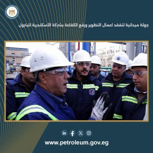 تنفيذاً لتكليفات المهندس كريم بدوي وزير البترول والثروة المعدنية بالاسراع في الاستغلال الأمثل للأصول بمعامل التكرير ، أجرى المهندس صلاح عبدالكريم الرئيس التنفيذي للهيئة المصرية العامة للبترول جولة ميدانية لمتابعة معدلات تنفيذ مشروع تأهيل الغلايات بشركة الاسكندرية للبترول والتى تمثل تجربة وطنية متكاملة ينفذها فريق عمل من شركة القاهرة لتكرير البترول ، كما أجرى جولة بمصفاة شركة الشرق الأوسط لتكرير البترول “ميدور”