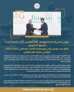 تنفيذاً لتكليفات المهندس كريم بدوي وزير البترول والثروة المعدنية بفتح اسواق عمل جديدة أمام الشركات خارج مصر ، أعلنت الشركة الحديثة للغاز الطبيعي ( مودرن جاس ) عن مشروع جديد لها بالمملكة العربية السعودية ، حيث وقعت الشركة اتفاقاً مع مجموعة طلعت مصطفى لتنفيذ شبكات الغاز مركزيًا لمدينة “بنان الرياض” السكنية .