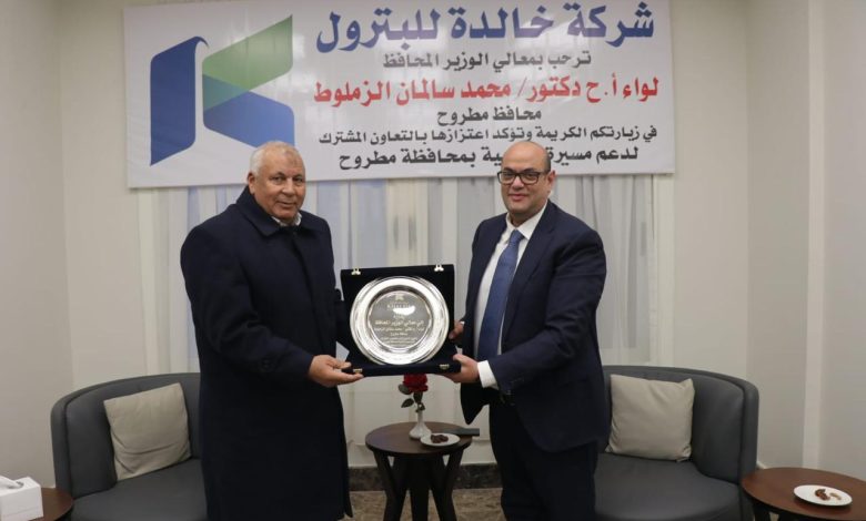 ‎وتأتي هذه الزيارة في إطار دعم جهود التنمية المستدامة بمحافظة مطروح، وتعزيز قنوات التواصل المباشر لخدمة المشروعات المحلية والتأكيد على أهمية تكامل الأدوار بين مؤسسات الدولة والشركات الوطنية، بما يسهم في دفع عجلة الاستثمار وتحقيق التنمية الشاملة. كما تم خلال اللقاء تقديم التهنئة لسيادة المحافظ بمناسبة توليه منصب محافظ مطروح، معربين عن خالص التمنيات له بالتوفيق والسداد في مهام عمله. كما تم بحث فرص التعاون المستقبلية، واستعراض دور شركة خالدة للبترول في دعم المبادرات المجتمعية والتنموية بالمحافظة.